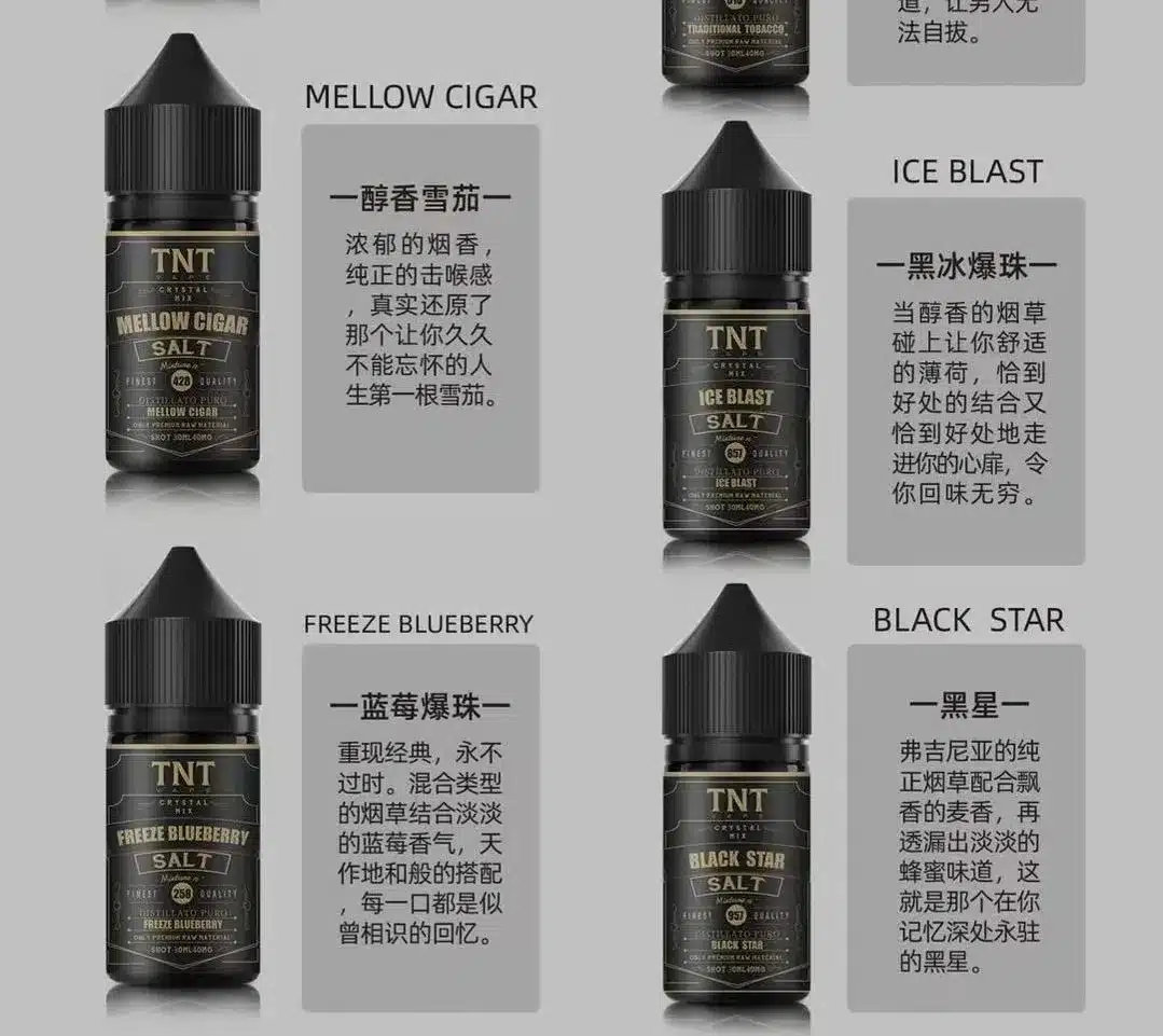 搶先評價 “TNT煙油菸草系列原裝正品 30ML 醇厚煙感 現貨供應” 取消回覆